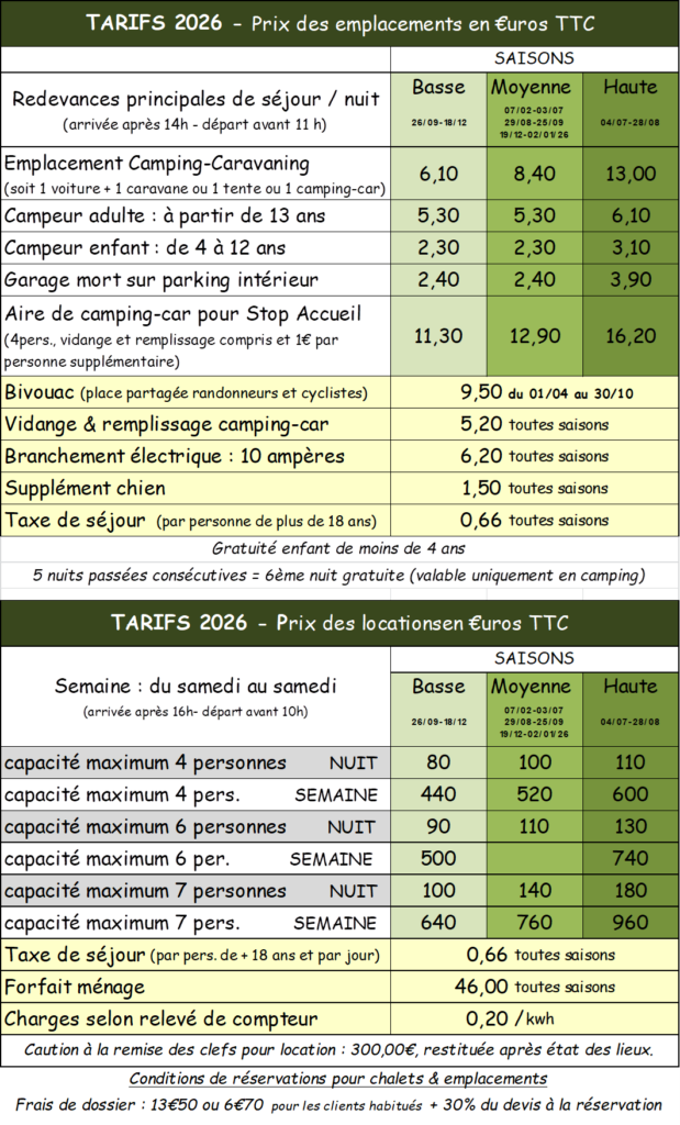 ATTENTION : pour les entrées, le camping est fermé à la circulation de 23h à 7h. Les sorties peuvent néanmoins s’effectuer normalement.